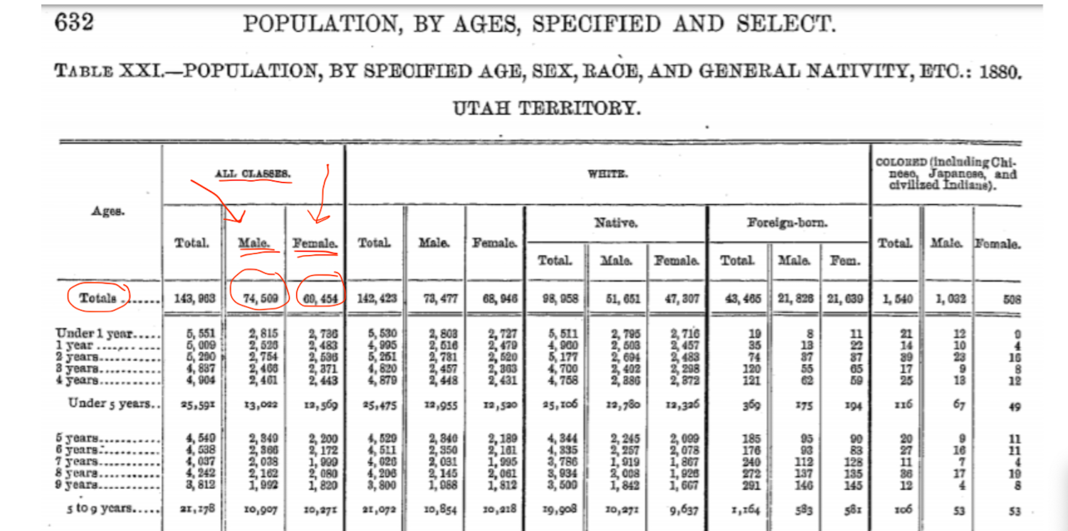 Early Utah was no exception to God’s arrangement. I was taught that early Utah had more women than men, and that plural marriage was therefore necessary. There weren’t more women than men, but even if there were, it wouldn’t justify polygamy. Like so many explanations I once accepted, this one doesn’t hold up either.